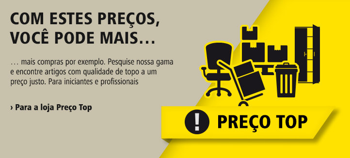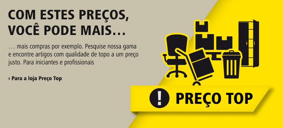 Mas, afinal, o que significa “tudo para a empresa”? Aqui ficam algumas das perguntas colocadas com maior frequência. Este slogan da marca identifica o desafio que nos colocamos a nós próprios, constituindo, simultaneamente, uma promessa. Afinal, não nos limitamos a oferecer-lhe equipamento de trabalho, mas sim produtos de qualidade para todas as aplicações. Produtos de qualidade, com excelente funcionalidade, design e ergonomia. Os nossos produtos podem ser pesquisados por categoria ou pela página de catálogo.